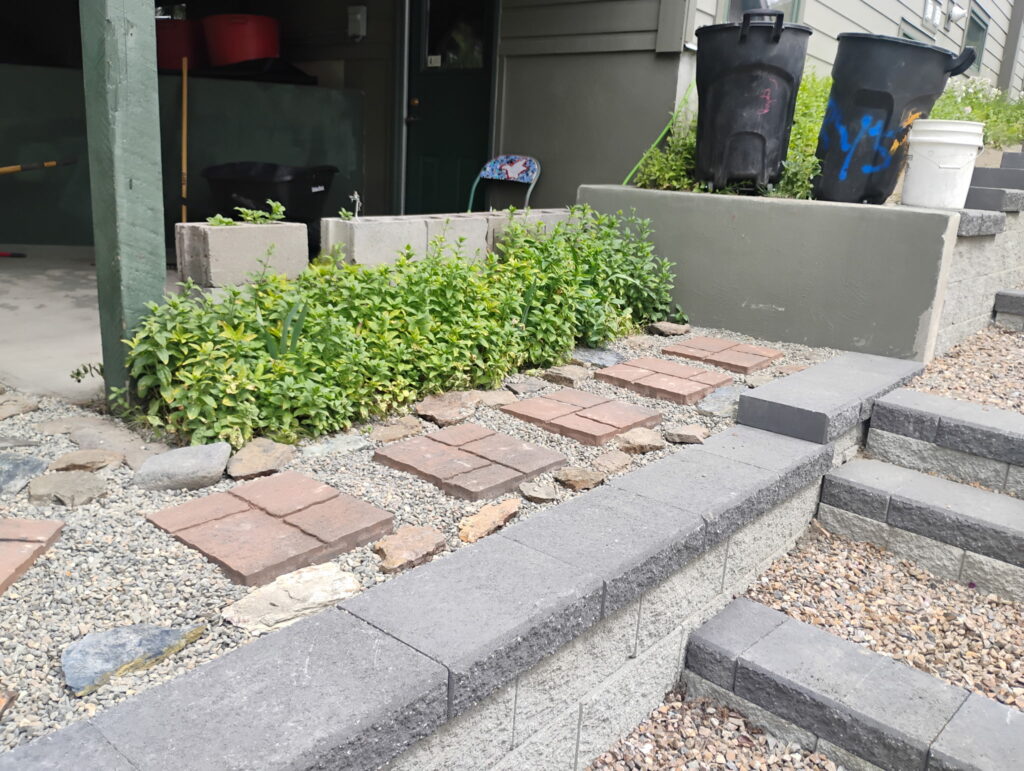 Installed a combination of natural flagstone, charcoal interlocking bricks, and decorative pavers.